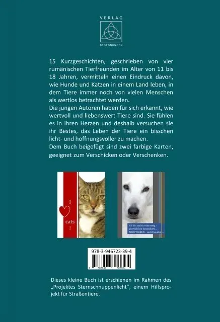 15 Kurzgeschichten – geschrieben von vier rumänischen Tierfreunden im Alter von 11 bis 18 Jahren, vermitteln einen Eindruck davon, wie Hunde und Katzen in einem Land leben, in dem Tiere immer noch von vielen Menschen als wertlos betrachtet werden.