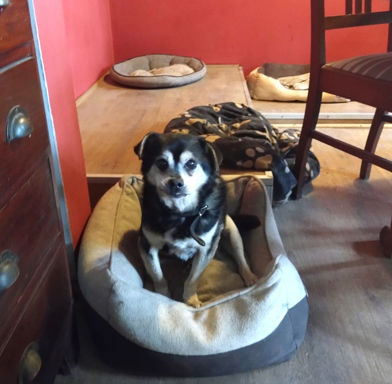 Auch Pufek war endlose Jahre im Tierheim und es ist ihm so schwergefallen. Er ist bei jeder Gelegenheit aus seinem Zwinger weggelaufen, so dass man schon auf die Homepage geschrieben hatte, er müsse unbedingt ein Sofa haben. Aber niemand wollte den kleinen Kerl haben und so blieb er im Zwinger, obwohl alles in ihm zum Menschen drängte. So fand er auf dem Hof Aufnahme und genoß dort sein warmes Körbchen. Er wurde ca. 15 Jahre alt. Frau Müller überträgt ihre Patenschaft auf Saba, dafür bedanken wir uns ganz herzlich.