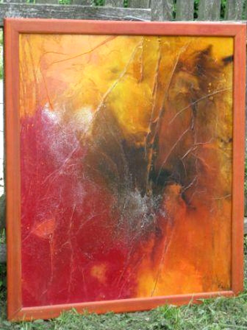 So ungefähr im Jahr 1996 zog "es" mich in die abstrakte Malerei. Ich hatte Freude am Experimentieren, probierte mit Lust das Manschen mit Pigmenten und Füllstoffen, war fasziniert vom Fluss der Farben, verlor und gewann den Einfluss an deren Verlauf.