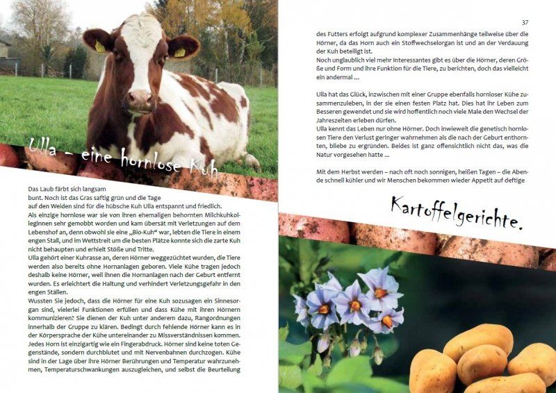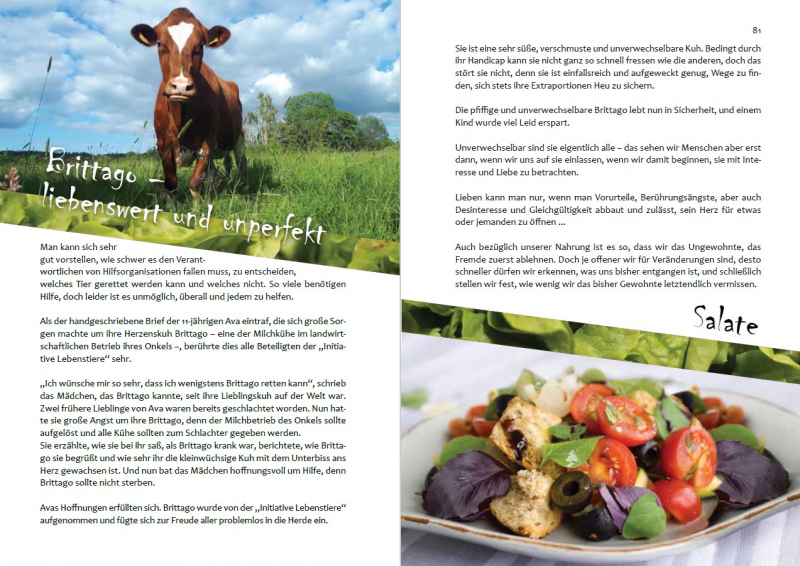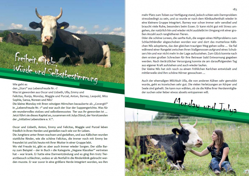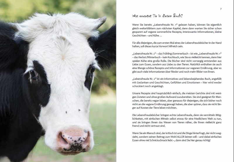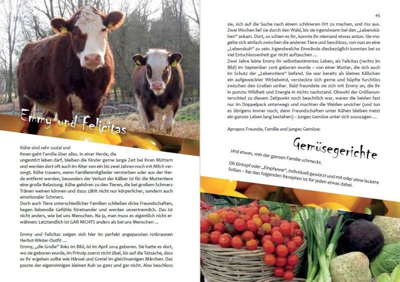 Natürlich enthalten sie auch eine Menge schöne Rezepte und Informationen zur veganen Ernährung, aber es gibt auch viele Informationen über Rinder und noch mehr Bilder von ihnen.