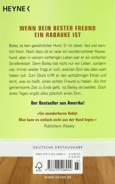 Bailey ist clever, faul und ziemlich frech. Am Ende eines tristen Lebens als Straßenköter fragt er sich, wozu er überhaupt auf der Welt war, und ist verblüfft, plötzlich als wunderschöner Rassehund wiedergeboren zu werden. Der achtjährige Ethan nimmt ihn bei sich auf, und Bailey lernt, was es heißt, einen echten Freund zu haben. Aber seine Reise ist noch nicht beendet, er muss weiterziehen und noch viel lernen. Als er Ethan nach vielen Jahren wiedersieht, ergibt alles plötzlich einen Sinn ...